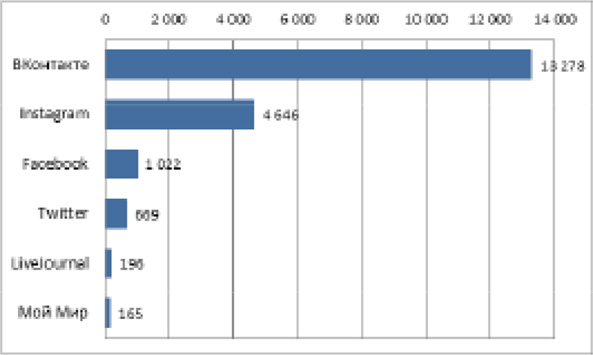 В России на первом месте в рейтинге популярности находится социальная сеть VK.com, которая имеет более 13 миллионов активных пользователей[88], а совокупная активная аудитория наиболее популярных социальных медиа в нашей стране за ноябрь 2016 г. составляет чуть больше 35 млн человек, по данным коммуникационного агентства Brand Analytics[89].