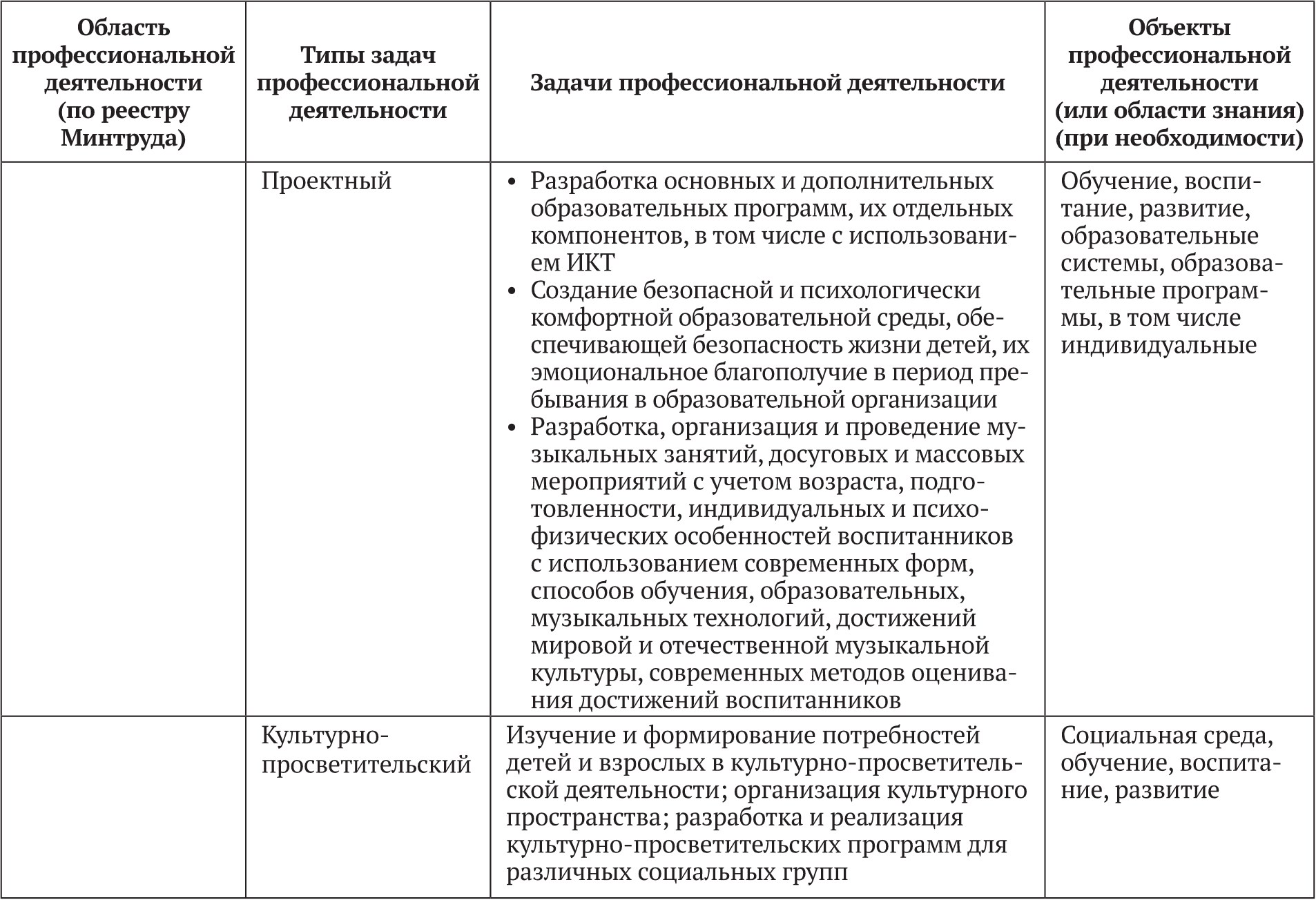 Типы задач профессиональной деятельности выпускников : педагогический, проектный, культурно-просветительский.
