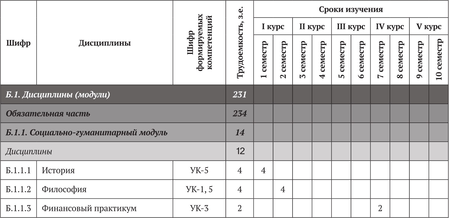 Рекомендуемый объем обязательной части ОПОП бакалавриата (без учета ГИА) – 231 зачетная единица.