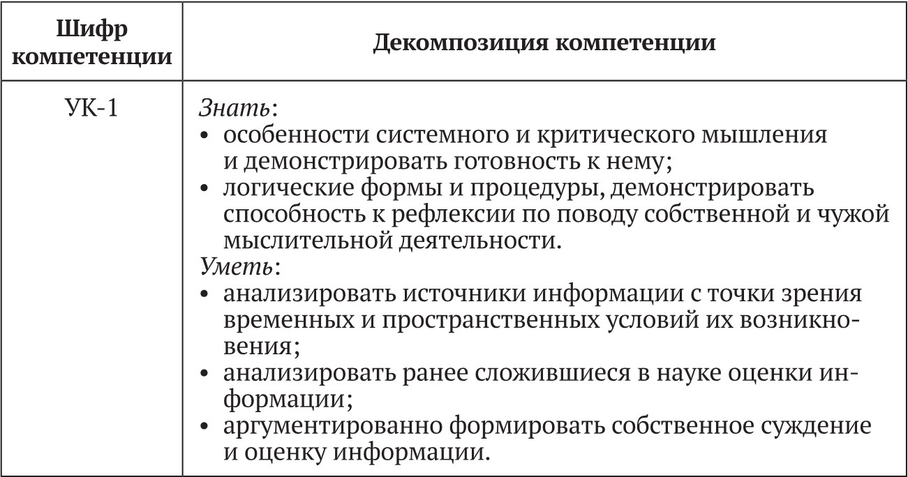 • УК-1. Способен осуществлять поиск, критический анализ и синтез информации, применять системный подход для решения поставленных задач.