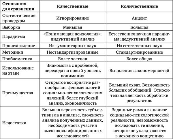 Таблица 1. Сравнительные характеристики качественных и количественных методов