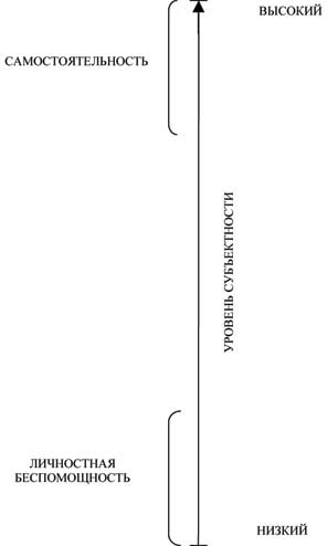 Нахождение человека на той или иной точке континуума «личностная беспомощность – самостоятельность» является индикатором его уровня субъектности, то есть его способности преобразовывать действительность, а также собственную жизнедеятельность, управлять своей деятельностью.