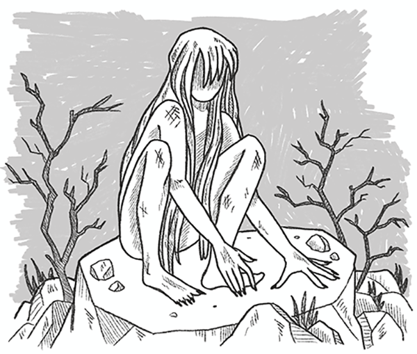 Её поверхность вспучилась, словно оттуда, снизу, поднимался гигантский пузырь. Он всё надувался огромным тёмным куполом, а Ирка сидела, не шевелясь, и смотрела, как медленно всплывает со дна омута большое рыхлое тело. И вот уже из воды вылезает приплюснутая, заросшая тиной, похожая на лягушачью, голова.
