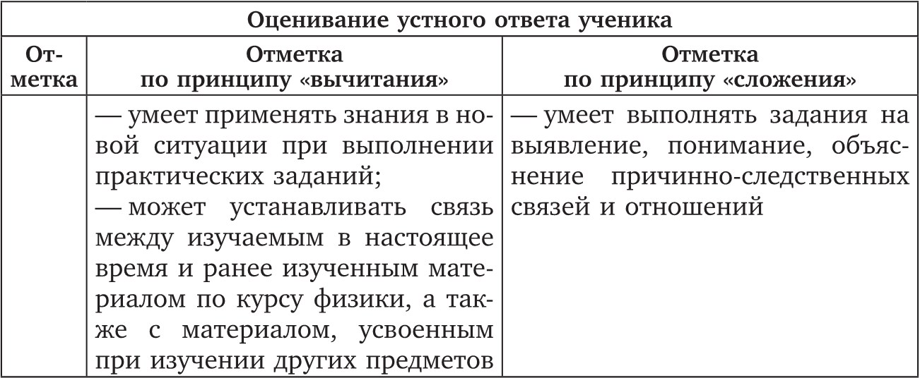 Сравним принципы «сложения» и «вычитания» при выставлении отметок учащемуся, чтобы понять, в чем заключаются отличия между ними (табл. 2.)3.