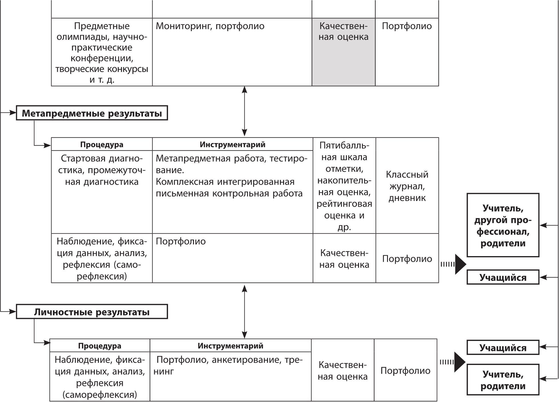 Особенно много вопросов возникает у учителя в отношении методики оценки метапредметных результатов, связанных с формированием и развитием универсальных учебных действий (УУД)2, – личностных, регулятивных, познавательных и коммуникативных: «Как оценивать метапредметные результаты: отдельно или вместе с предметными результатами?», «В какой системе – в традиционной, в тестовой, в критериальной или в рейтинговой?»
