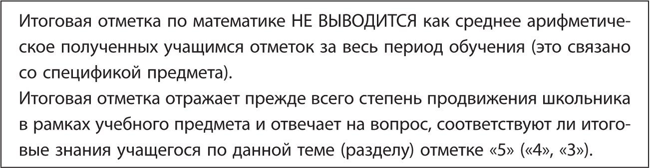 Отметка – это информация об уровне знаний и умений школьника по данной теме (разделу) на момент осуществления контроля, выраженная в числовой (наиболее удобной) форме. Отметка не способ поощрения или наказания учащегося, выставляется она не за уровень активности работы школьника на уроке, ее цель – оценить уровень знаний, которые показал учащийся в процессе этой работы. Для поощрения и стимулирования активности учащегося, его попыток и стремления проявить себя и участвовать в решении различных вопросов на уроке должны использоваться другие педагогические приемы (словесная оценка, похвала и пр.). Искаженная (неверная) информация об уровне знаний не позволяет учащемуся (и его родителям) сделать необходимые выводы и в итоге наносит значительный вред школьнику.