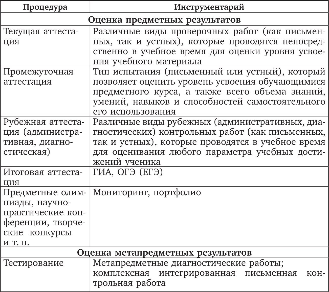 Все перечисленные средства, формы и методы должны обеспечить комплексную оценку результатов обучения школьника – его личностные, метапредметные и предметные результаты.