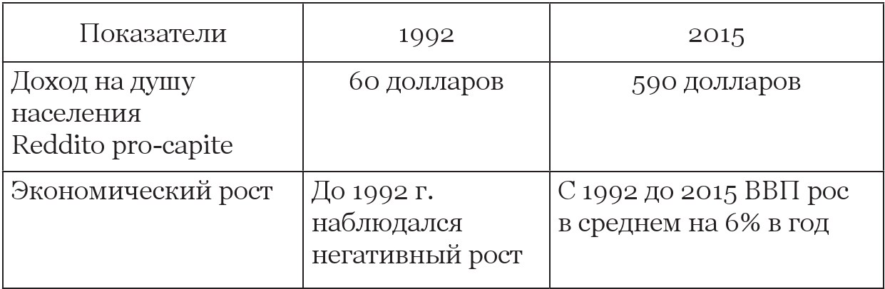 Плоды мира не перечесть. Четверть века мира – совсем немало для этой страны, где на момент подписания мира было 14 миллионов жителей, а сейчас свыше 27 миллионов, а 45% населения младше 14 лет. Большинство сегодняшних мозамбикцев не знали войны. Вот сводная таблица, в которой сравнивается Мозамбик 4 октября 1992 года с Мозамбиком 23 года спустя: