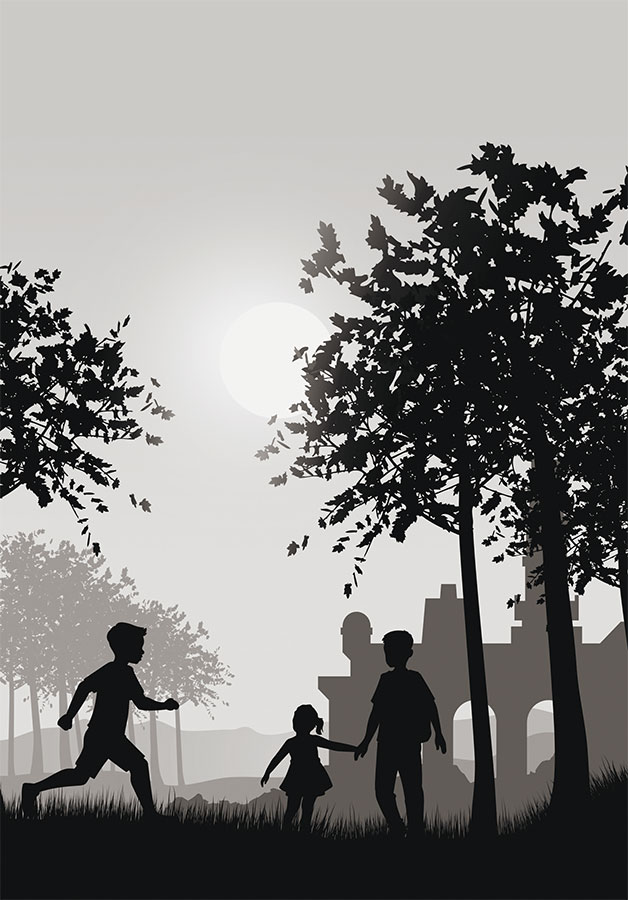 Я помню, с каким страхом я смотрел всегда на это величавое дряхлое здание. О нём ходили предания и рассказы один другого страшнее. Говорили, что остров насыпан искусственно, руками пленных турок. «На костях человеческих стоит старое замчи́ще», – передавали старожилы, и моё детское испуганное воображение рисовало под землёй тысячи турецких скелетов, поддерживающих костлявыми руками остров с его высокими пирамидальными тополями и старым за́мком. От этого, понятно, замок казался ещё страшнее, и даже в ясные дни, когда, бывало, ободрённые светом и громкими голосами птиц, мы подходили к нему поближе, он нередко наводил на нас припадки панического ужаса, – так страшно глядели чёрные впадины давно выбитых окон; в пустых залах ходил таинственный шорох: камешки и штукатурка, отрываясь, падали вниз, будя гулкое эхо, и мы бежали без оглядки, а за нами долго ещё стояли стук, и топот, и гоготанье.