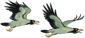 – Фу, фу, тебе на своём добром коне в три года не доехать до Жар-птицы. Я один знаю, где она живёт. Так и быть – коня твоего съел, буду тебе служить верой-правдой. Садись на меня да держись крепче.