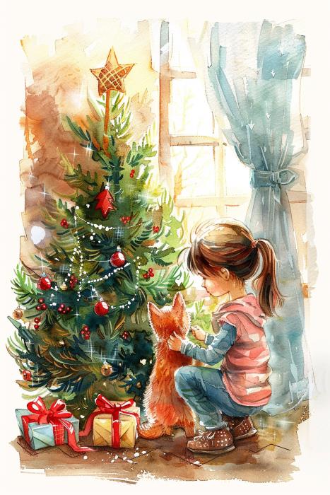 Вдруг из-под ёлки послышалось тихое «мяу». Мама посмотрела на Рыжего, потом на папу. Полина промолвила: