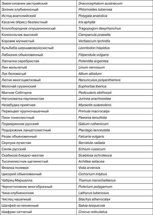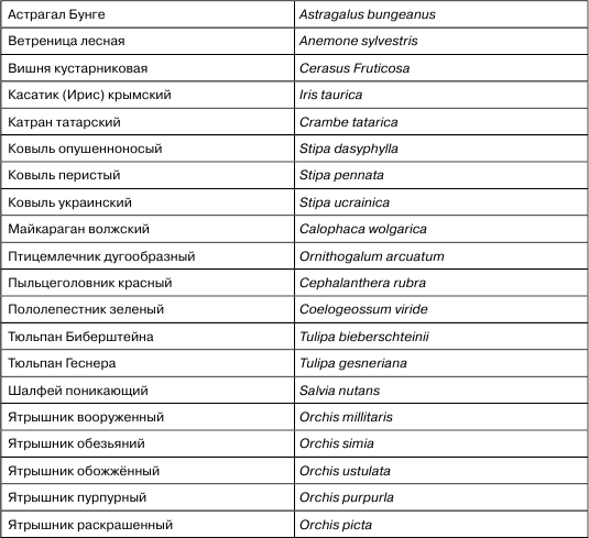 Разнообразна флора редких и исчезающих видов, численность которых в отдельных ООПТ лугово-степной зоны колеблется от 7 до 10 (12).