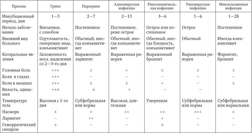Дифференциально-диагностические симптомы гриппа и других острых респираторных вирусных заболеваний