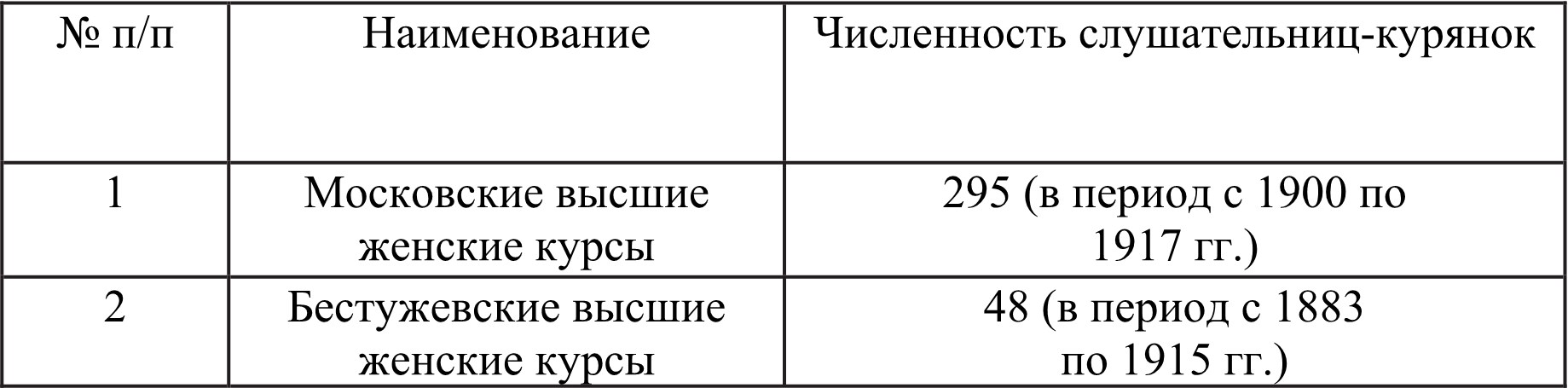 Получить же высшее образование возможно было только в столичных городах – Москве и Санкт-Петербурге, а также в крупных городах Российской империи, где были открыты высшие женские курсы. В силу различных причин курянки отдавали предпочтение Московским курсам В.И. Герье. Это, прежде всего, географическая близость Москвы, а также их большая доступность: плата за обучение в Москве была в 2 раза меньше, чем в Петербурге (100 и 200 руб. соответственно в начале XX в.), к тому же руководство Бестужевских курсов требовало обязательного предоставления справки о финансовой состоятельности семей и разрешало курсисткам проживание только дома или у родственников, а не в частных арендованных квартирах. В этом смысле Московские высшие женские курсы были гораздо демократичнее. Заметим также, что курсы в Москве открылись на 6 лет раньше Бестужевских.
