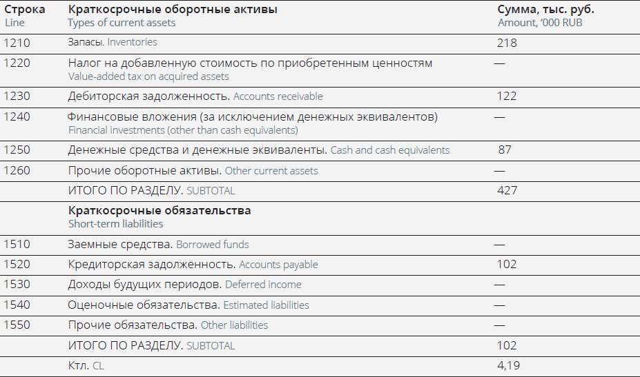 In the balance sheet form, short-term assets are reflected in the following lines (see Table 1).
