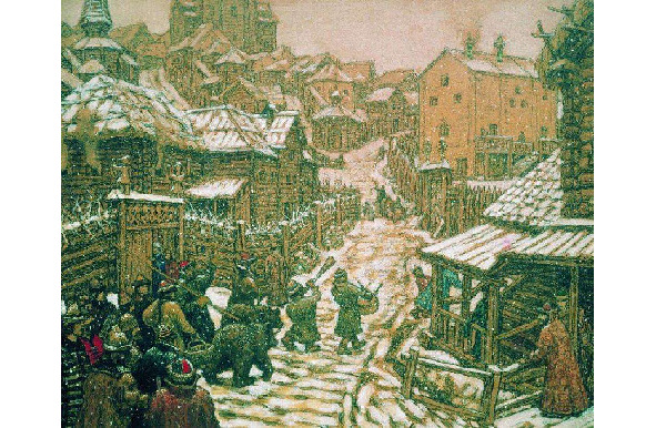 3, 4. Картины, соответствующие Духу Времени начала 17 века: «Медведчики» и «Гонцы. Ранним утром в Кремле», художник Аполлинарий Васнецов.