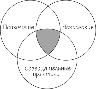 Представим каждую из дисциплин – психологию, неврологию и созерцательные практики – в форме круга (рис. 1). Открытия, сделанные в точке пересечения этих дисциплин, пока только раскрывают нам свой потенциал, однако ученые, клиницисты и созерцатели уже очень многое узнали о состояниях мозга, лежащих в основе благотворных психических состояний, а также о том, как их активировать. Эти важные открытия дают вам уникальную возможность повлиять на собственный разум. Вы можете стараться облегчать любой дистресс и любые дисфункции, улучшать свое благосостояние и поддерживать духовное развитие. Эти основные виды деятельности можно назвать путем пробуждения. И мы стремимся с помощью нейробилогии помочь вам с легкостью пройти этот путь.