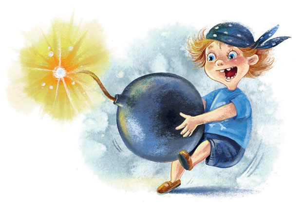 – Пап, смотри, что я нашёл! На арбуз похоже! И с искорками! – радостно сообщил Димка, руками и ногами обнимая огромную бомбу с горящим фитилём.