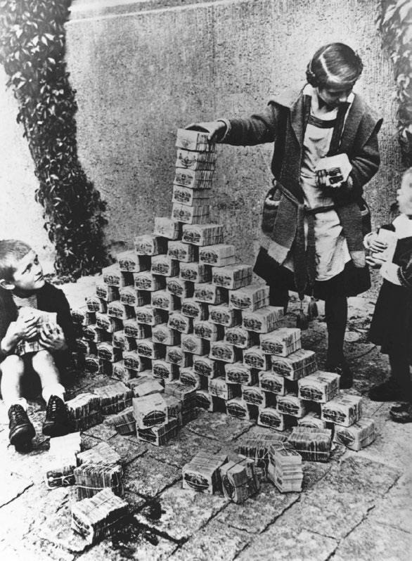 Перед вами фотография 1923 года – немецкие дети, играющие на улице с деньгами – с миллиардами фейковых денег. В годы Веймарской республики после Первой мировой войны инфляция достигла таких размеров, что 1 доллар США стоил 4,2 миллиона немецких марок.