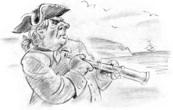 It happened one January morning. The captain rose earlier than usual. He went to the beach with a brass telescope.