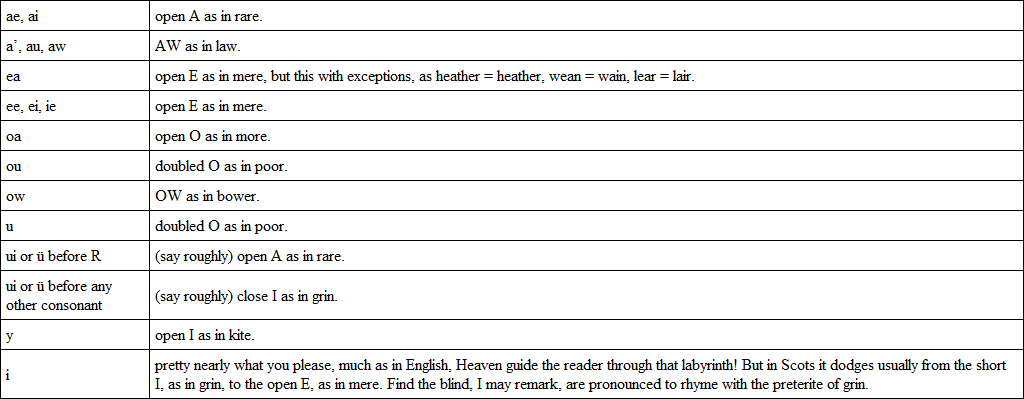 TABLE OF COMMON SCOTTISH VOWEL SOUNDS