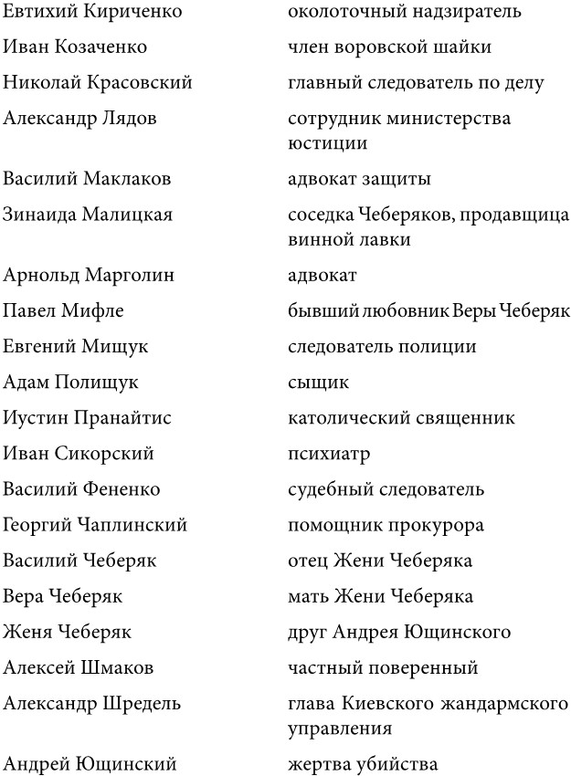Полицейские, вызванные на место происшествия, без труда установили личность мальчика: его имя значилось в школьных тетрадях, лежавших неподалеку. Тринадцатилетний Андрей Ющинский, как заявила его мать, пропал за несколько дней до этого. В последний раз его видели утром в субботу, 12 марта, когда он ушел из дому – как предполагалось, в школу. Однако Андрей прогулял занятия, отправившись к своему другу Жене Чеберяку – тот жил рядом с пещерами, за несколько километров от дома Андрея, в другом предместье Киева. Андрей и Женя вместе с еще несколькими детьми играли на территории кирпичного завода; к ней примыкал двухэтажный дом, где на верхнем этаже жило семейство Жени.