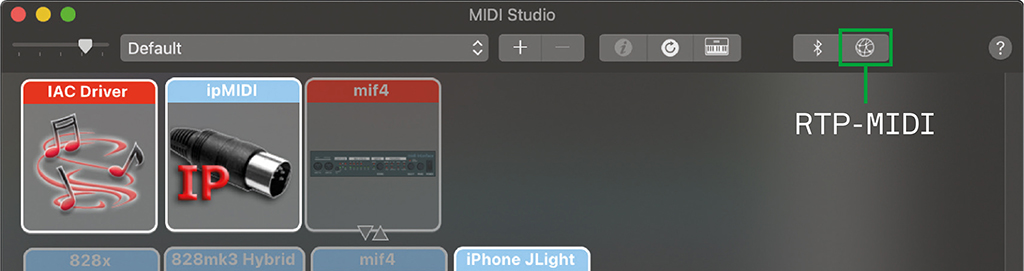 Для работы с RTP-MIDI нам нужно нажать на иконку глобуса в верхнем правом углу. Давайте разберемся, что здесь к чему