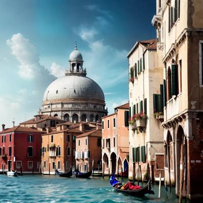 A breathtaking, unforgettable view. Ancient palazzos with their here and there shabby walls are like a metaphor of the fragility of man-made beauty in the face of the inexorable passage of time. At the same time, the dome rising to the sky is a symbol of the proud, immortal human spirit. The houses are like separate notes, each with their own character, but thanks to the canal they merged into one euphonious chord: the water that fills Venice is that eternal invisible connection that allows the buildings to harmoniously coexist with each other and conduct their silent monologue. HQ, 8k, -testp, -upbeta -beta -upbeta.