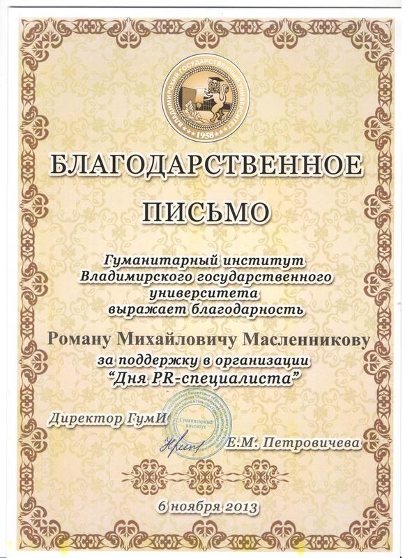В июле 2012 года проходила практику у Романа Масленникова в PR-агентстве «ПРОСТОР». Перед этим я попала по распределению ВУЗа в ИТАР-ТАСС. Там практикантам-волонтерам (у них там это так называется), предлагалось на выбор – любо крепить значки на сумки, помогая таким образом, готовится к Всемирному медиа саммиту, любо встречать иностранных гостей, прибывающих на это мероприятие. Не стоит и говорить, что такая практика совсем меня не устраивала. Сбежав из ИТАР-ТАСС, стала искать место для практики. Через какое-то время вышла на практику в агентство «ПРОСТОР». И не пожалела! Роман Масленников нещадно нагружал креативной и профильной работой, при этом прислушивался к моим идеям и давал возможность для самореализации. За время практики, я получила много дополнительных знаний о связях с общественностью и устройстве работы пиар-агентства, а главное – смогла с успехом применить полученные знания в деле. Месяц работы в «ПРОСТОРЕ» – это самый лучший учебник по пиар!