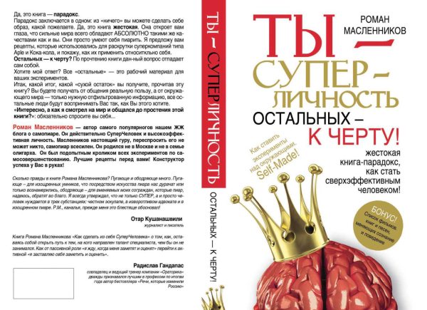 Итак, у вас есть отзывы целевой аудитории плюс журналисты. Но есть еще такой формат, как написание предисловий. Особо значимых для вас людей вы можете попросить сделать вам предисловие. У меня, например, к книге «Суперличность» этими людьми были Радислав Гандапас и Отар Кушанашвили. То есть: книга «Суперличность» о потенциальных одиозных фигурах. И я видел одиозную фигуру в шоу-бизнесе – Кушанашвили. А самым статусным бизнес-тренером я видел Гандапаса.
