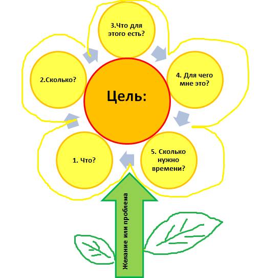 1-Сначала ставим Цель, заполняем наш цветочек «РОМАШКА»