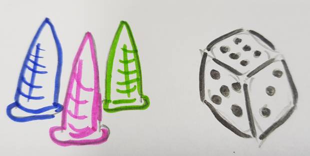 Итак, мы с вами – Пираты! Нам потребуются фишки, по количеству участников и один кубик – игральная кость.