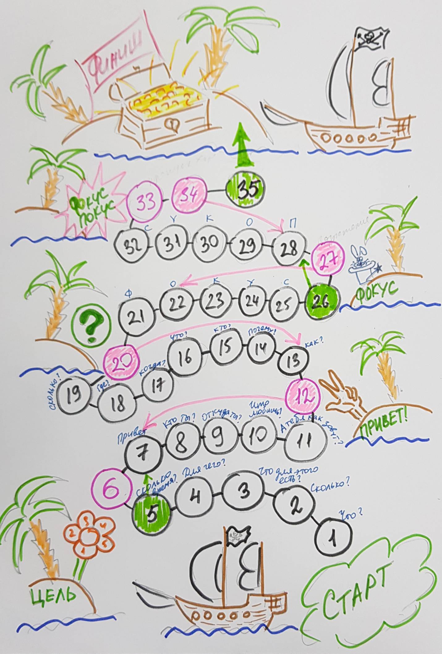 – Молодец Машка! Правильно! Главное – это пробовать и тогда всё будет получаться. А для того что бы потренироваться и правильно использовать все новые знания, я предлагаю поиграть со мной или с друзьями в интересную настольную игру, которая называется «Карта сокровищ!».