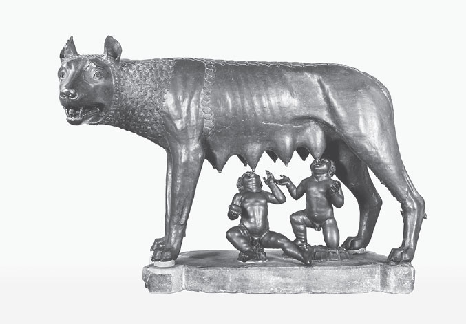 Таким образом, в истории Ромула и Рема есть все признаки широко распространенной народной сказки. Более того, во времена Античности это было не единственное объяснение основания Рима. В действительности существовало как минимум 25 различных версий того, как был основан Рим, кто был его основателем и от кого или чего произошло его название[7]. Как таковая история о брошенных близнецах, вскормленных волчицей, появилась лишь около 300 года до н. э. Несмотря на всю сомнительность, ее быстро подхватили. Образ двух младенцев, вскормленных волчицей, стал символом основания Рима. В 296 году до н. э. близ Тибра была установлена бронзовая скульптура волчицы с близнецами, а три десятилетия спустя это трио начали отчеканивать на монетах. Ранние римские историки, например Квинт Фабий Пиктор, в течение III века до н. э. разработали легенду о Ромуле и Реме. За ними (хотя и с долей скепсиса) последовали два важнейших древнеримских историка: Тит Ливий (или просто Ливий) и Дионисий Галикарнасский – оба писали в последние десятилетия I века до н. э. Ливий отмечал, что истории о началах Рима «приличны скорее твореньям поэтов», имеющим мало отношения к достоверным фактам. Однако он замечал, что город этот, каким бы туманным ни было его происхождение, получил «самую великую после богов власть»[8].