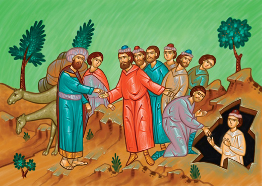 Иосиф больше не мог сдерживаться. Он приказал выйти всем, кроме братьев. И когда никого не было рядом, он открылся братьям: «Я Иосиф, – сказал он. – Ваш брат, которого вы продали в рабство. Но не мучьте себя за это. Не вы, а Бог направил меня в Египет, чтобы сделать помощником фараона и спасти вам жизнь. Голод будет длиться ещё пять лет. Поэтому спешите к отцу и приходите все сюда, вместе с детьми, со всеми стадами и со всем своим добром. Здесь я смогу устроить вашу жизнь». Иосиф обнял Вениамина и зарыдал. Потом он обнял остальных братьев, и конца не было их разговорам.