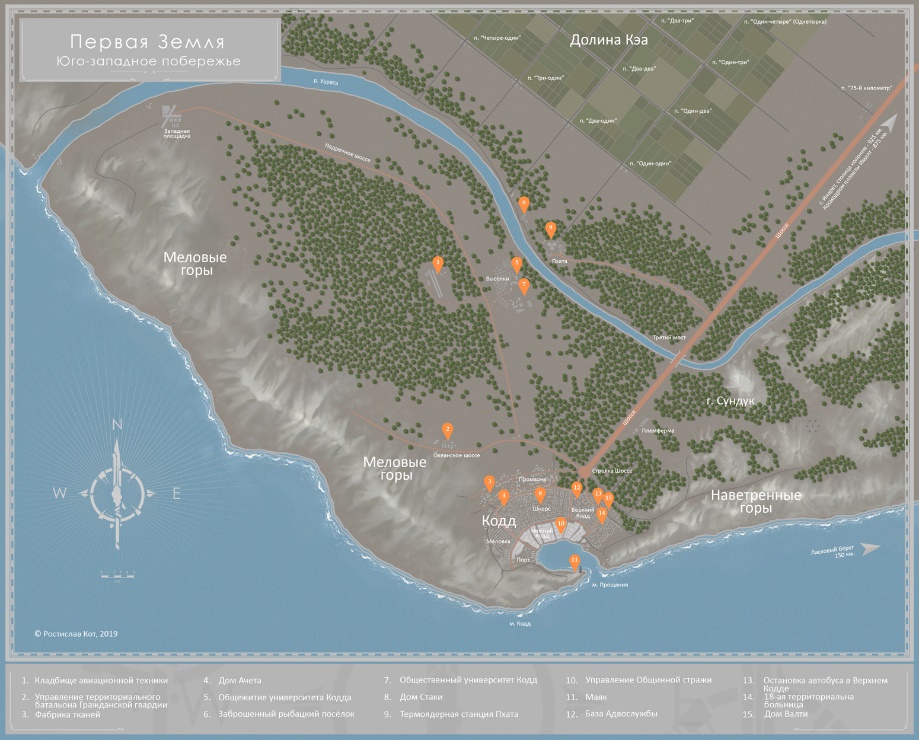 А поскольку Космодром у нас расположен в средних широтах северного полушария, то к нему ведёт два пучка посадочных трасс – юго-западный и северо-западный. Подлетают к нам все, в основном, с юго-западного направления, со стороны океана. И все три юго-западные посадочные трассы как раз проходят через сам Кодд и ближайшие к нему участки побережья.