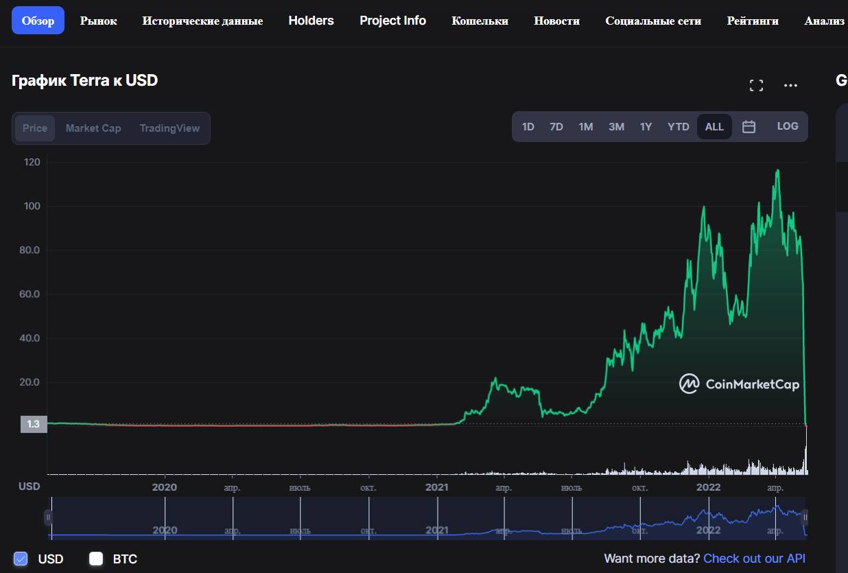 Убытки – неотъемлемая часть инвестирования. Не расстраивайтесь, если что-то пошло не так. Рассматривайте убытки как инвестицию в себя – так Вы приобретаете ценный опыт, из которого можно сделать полезные выводы. Яркий пример – все инвесторы и холдеры таких криптовалют как TERRA (LUNA) и UST (стейбл-коин, ставший символом неудачи) потерпели огромные убытки…C 8 по 13 мая 2022 года стоимость этих актив полетела так сильно вниз, что тут даже нечего добавить…Никто не знал, что такое возможно, но всё произошло именно так.