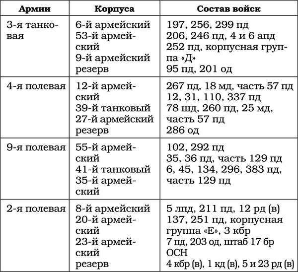 Таблица. Состав войск группы армий «Центр»