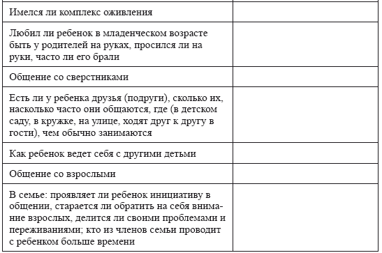 Эта методика позволяет определить проблемы развития ребенка. Карта сбора его анамнеза представлена ниже.