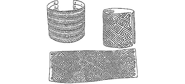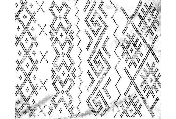 B. A. Rybakov, investigating the development paths of the ancient rhombo-meander ornament in the Neolithic, concludes that: “The stability of this complex and difficult-to-implement pattern, its undoubted connection with the ritual sphere makes us treat it especially carefully… Neoenolithic meander and rhombic the pattern turned out to be a middle link between the Paleolithic, where it first appeared, and modern ethnography, which gives innumerable examples of such a pattern in fabrics, embroidery and weaving”. Speaking about the dentin pattern of mammoth tusks, as a possible prototype of the Paleolithic meander-carpet pattern of the Mezin type, B. A. Rybakov notes that: “The amazing durability of exactly the same pattern in the Neolithic, when there were no mammoths anymore, does not allow us to consider this a mere chance coincidence, but forces us to look for intermediary links. I consider the custom of ritual tattooing to be such a mediating link”.