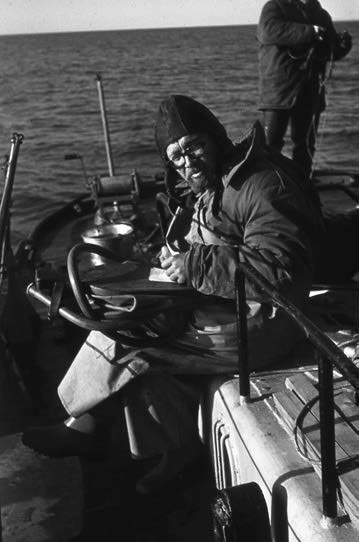 Готовя небольшой трал, мы с Виктором находились на корме катера и следили за тем, как двигается лодка. Тянувшаяся следом за ней верёвка с каждым метром затрудняла ход и оставляла за кормой пенный след. Несмотря на прикрытие, Борису приходилось грести изо всех сил. Вот он на короткое время остановился, чтобы снять тёплую куртку, и лодку быстро поставило бортом к волне. Борис незамедлительно вернул её в прежнее положение и с новой силой налёг на вёсла. Есть что-то необыкновенно притягательное в стремлении лодки навстречу волнам: движения гребца размеренны и рассчитаны до деталей; от этого зрелища нельзя оторваться.