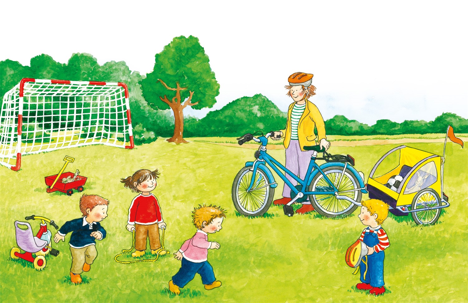 Сегодня Якоб с мамой едут на детскую площадку. Якоб очень рад, ведь рядом с площадкой есть поле с настоящими футбольными воротами! Якобу подарили всамделишный чёрно-белый футбольный мяч, как у спортсменов, и теперь он хочет испробовать его в игре со своими друзьями. На поле уже ждут София, Лео и ещё какой-то незнакомый мальчик.