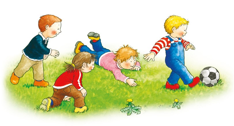 Игра начинается! Все бегут за мячом. Каждый пытается вести мяч и забить его в ворота. Но тот часто летит мимо. Ничего страшного! Ребята продолжают игру.