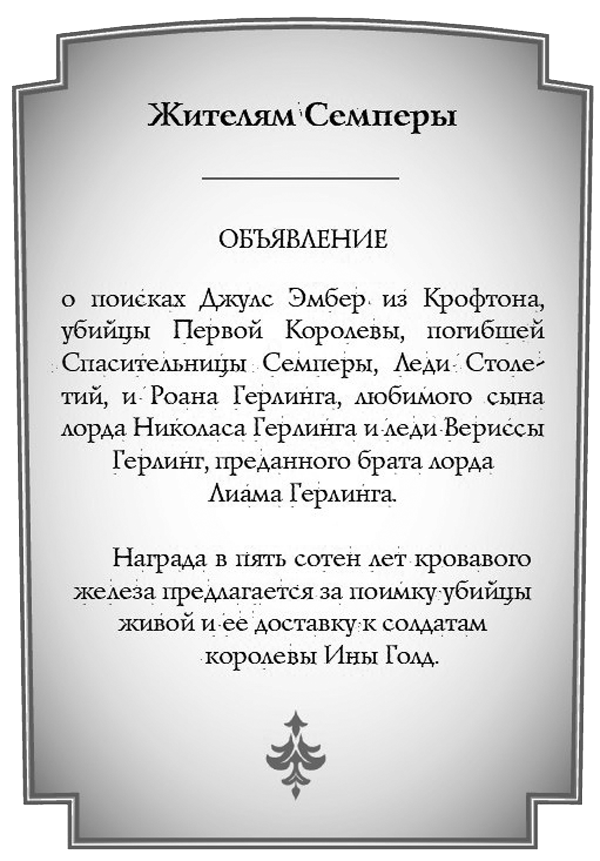 Ей не нужно пояснять, что она имеет в виду. Слухи о моих преступлениях разлетелись во все уголки Семперы: я соблазнила Роана Герлинга, будучи служанкой в Эверлессе, и использовала его, чтобы попасть в покои Королевы. Потом перерезала Роану горлу и пронзила сердце ее величества.