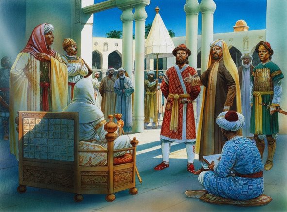 Bahira qurayshiylarning qoʻnogʻiga keladi. U savdogarlar bilan uchrashib, ularni oʻzinikida mehmon boʻlib ketishni taklif qildi.