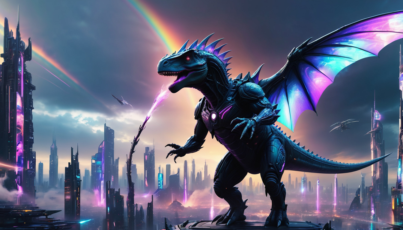 Затем приземлился на землю,повернулся в сторону высокотехнологичного города и грозно зарычал.
