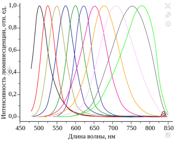 This element also has the property of fluorescence, but reaches its peak only at 790 nm. This law is effective only for massive crystals, but when their size decreases comparatively and can reach the state of reduction to quantum dots, the peak of fluorescence begins to shift by a certain value, being already in the ultraviolet range. Most of all, this dependence is personified by the fluorescence spectrum of cadmium telluride for various sizes, where the size of colloidal particles increases from about 2 to 20 nm, and some quantum well appears in the face of the reason for this peak shift (Fig. 2).