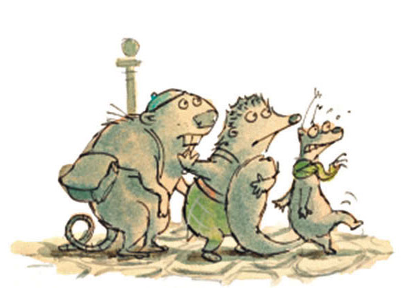 Когда друзья добрались до окраины города и первых домов, ёж Латте остановился и предложил дождаться ночи в укрытии.