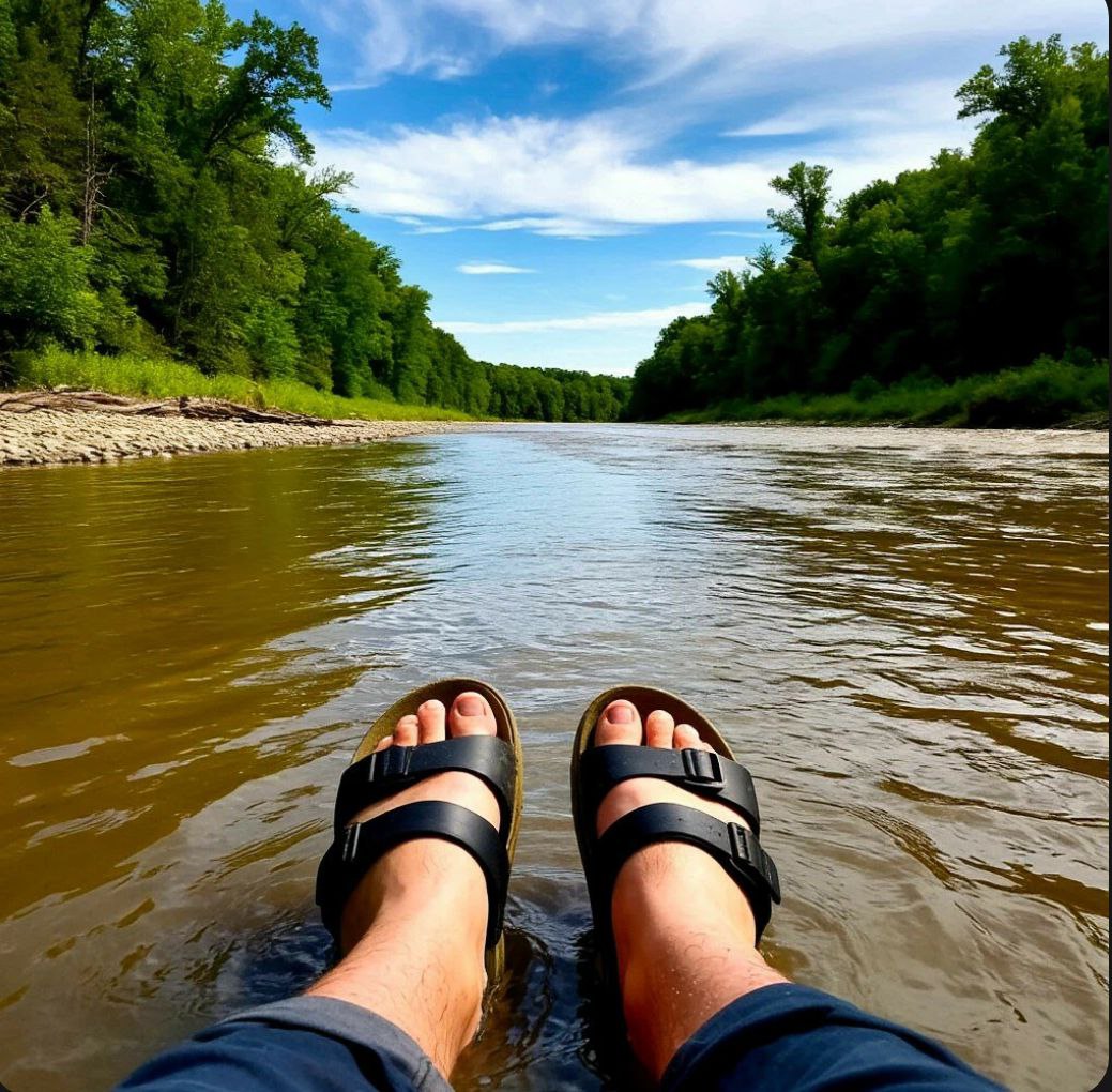 Дальше путь шел по знакомой, хоть и не сказать чтобы комфортной, тропе. Видно – накануне прошел хороший ливень, и дорога превратилась в глинистую топь, местами по щиколотку. Но я – как танк, грязи не боюсь! Мои верные пляжные тапочки справлялись на ура: периодически заходил в теплые глубокие лужи, полоскал ноги от налипшей глины – и снова вперёд, бодрее прежнего! Зарубите себе на носу, как заповедь: обувь в горы – святое! Без надежной, проверенной обуви – ни шагу в лес. Даже на легкий радиал.
