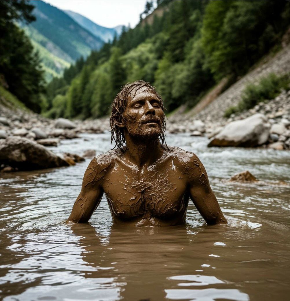 Пройдя три километра этого напряженного, но азартного пути, очутился на Партизанской поляне. Увы, "партизанят" тут, видимо, всерьёз и, чтобы заглушить внутренний страх или просто для куража, обильно поливают алкоголем, заедая консервами. Следы их бурного пребывания – повсюду: битое стекло, обгоревшие банки в кострищах, обрывки пакетов. Неприятно. Страха во мне не было, как и желания присоединиться. Зато тело – по уши в глине, как будто в грязевой ванне побывало. С наслаждением обмылся в студеной воде горной речки, что текла рядом, неспешно журча на перекатах. Прохладная, чистейшая вода смыла не только грязь, но и усталость, и легкое раздражение от увиденного беспорядка.